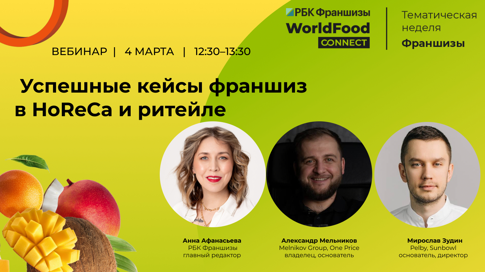 Приглашаем 4 марта в 12.30 по МСК на вебинар «Успешные кейсы франшиз в HoReCa и ритейле» в рамках тематической «Недели Франшиз» в партнерстве с разделом РБК Франшизы.