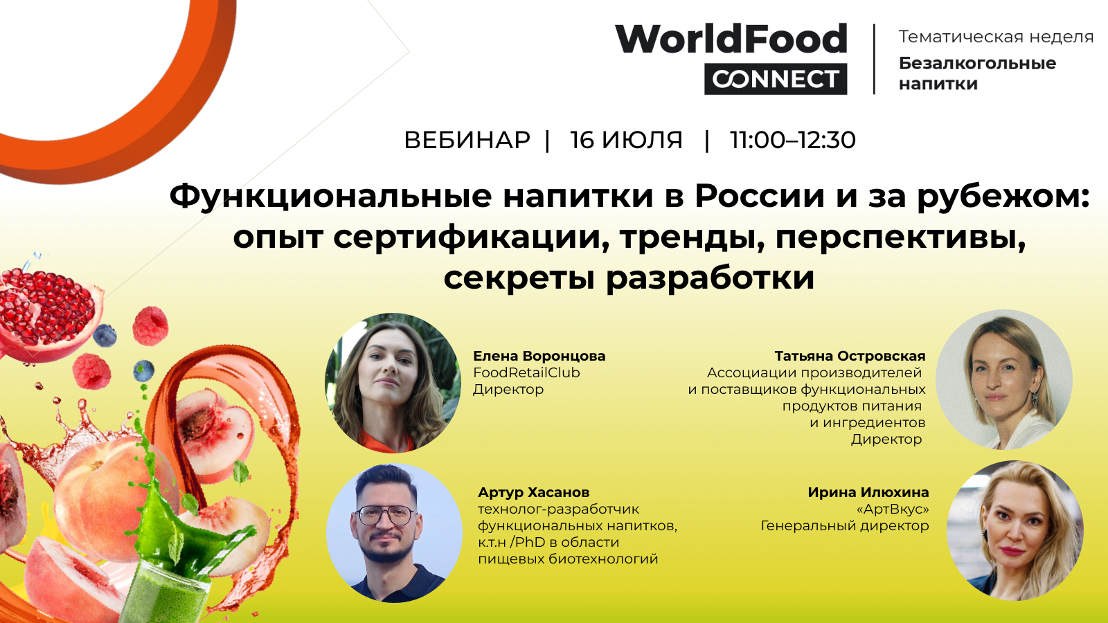 Приглашаем 16 июля в 11.00 по МСК на вебинар «Функциональные напитки в России и за рубежом: опыт сертификации, тренды, перспективы, секреты разработки» в рамках тематической недели «Безалкогольные напитки»