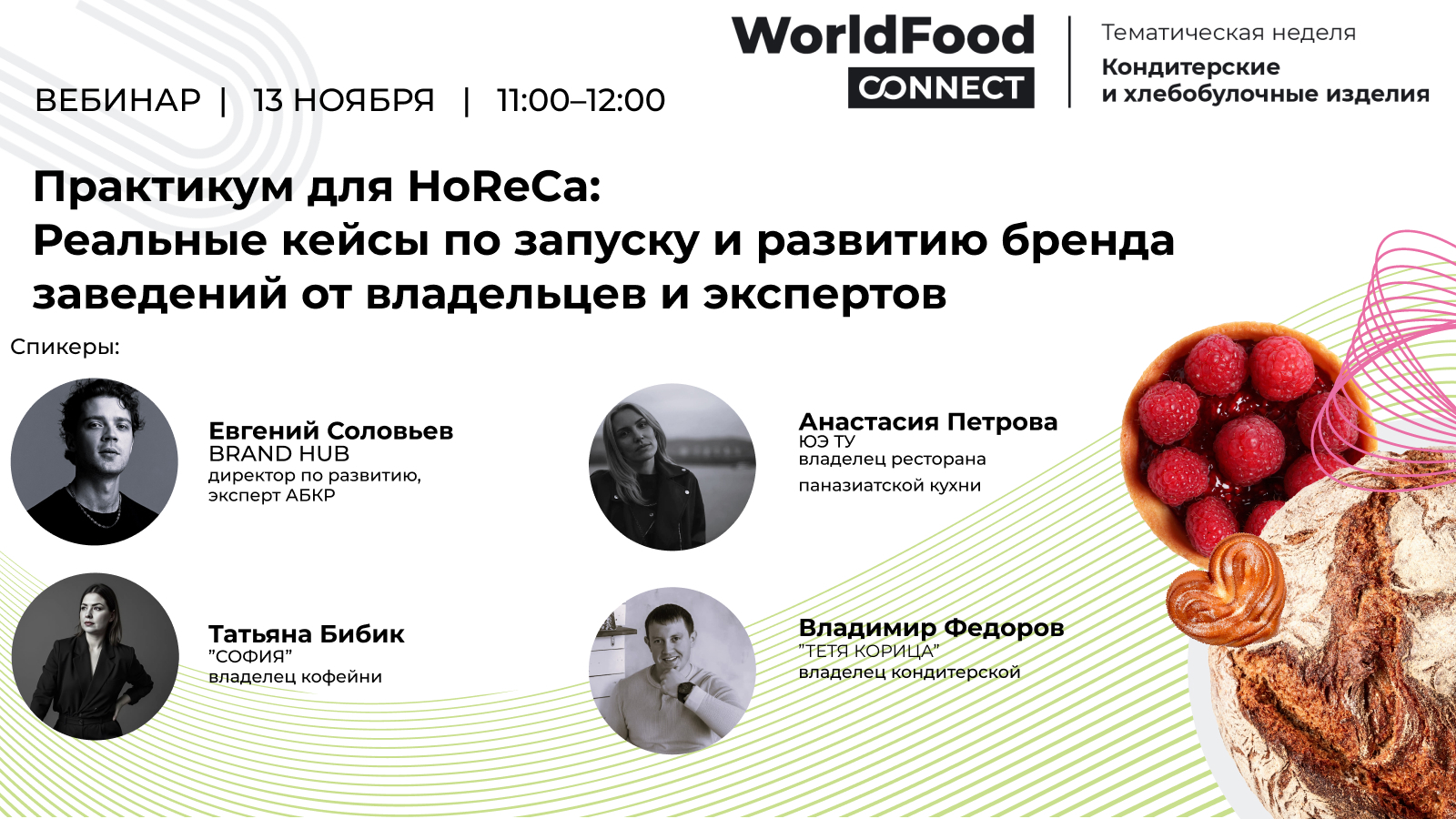 Приглашаем вас 13 ноября в 11:00 по Мск на вебинар "Практикум для HoReCa: Реальные кейсы по запуску и развитию бренда заведений от владельцев и экспертов" в рамках недели "Кондитерских и хлебобулочных изделий".