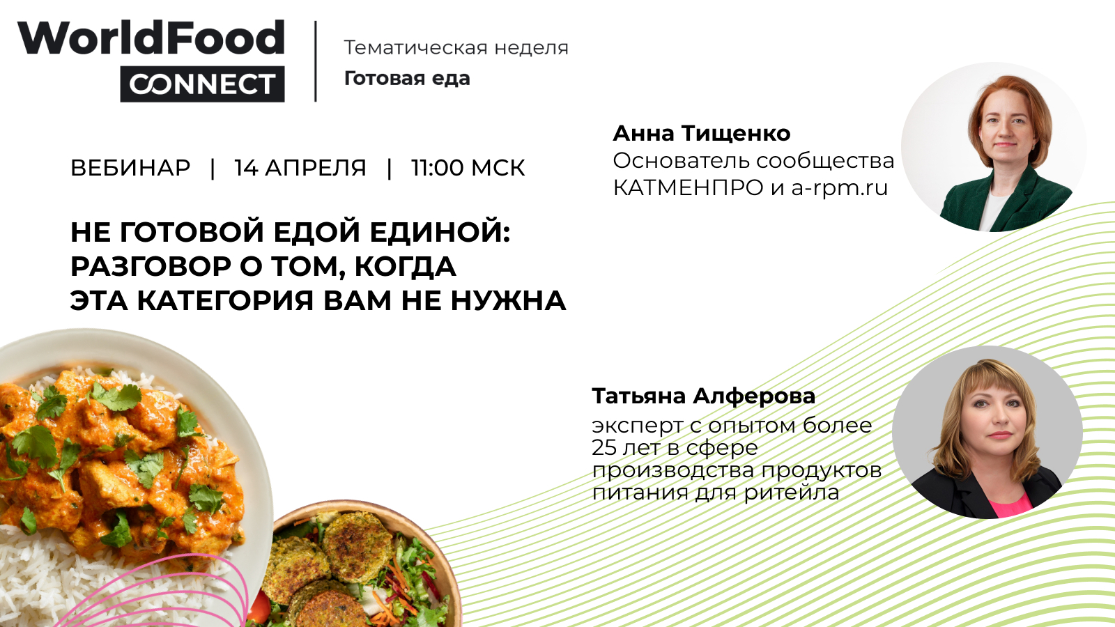 14 апреля в 11:00 (МСК) приглашаем на вебинар «Не готовой едой единой: разговор о том, когда эта категория вам не нужна» в рамках тематической недели "Готовая еда"